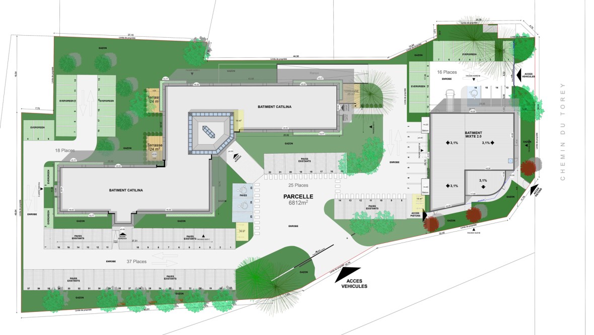 Le projet a pour but la rénovation du bâtiment existant : Catilina, ainsi que la création d"un nouveau bâtiment : Mixte 2.0 à l'Est de la parcelle